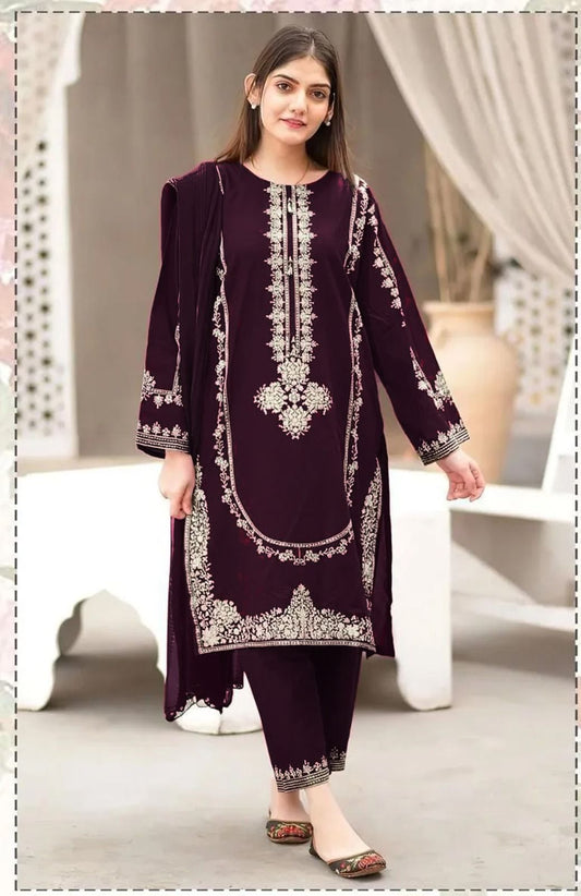 Unstitched 2pc ( 5.25 meter ) Embroidered heavy full front & sleeves. Plain dyed back...